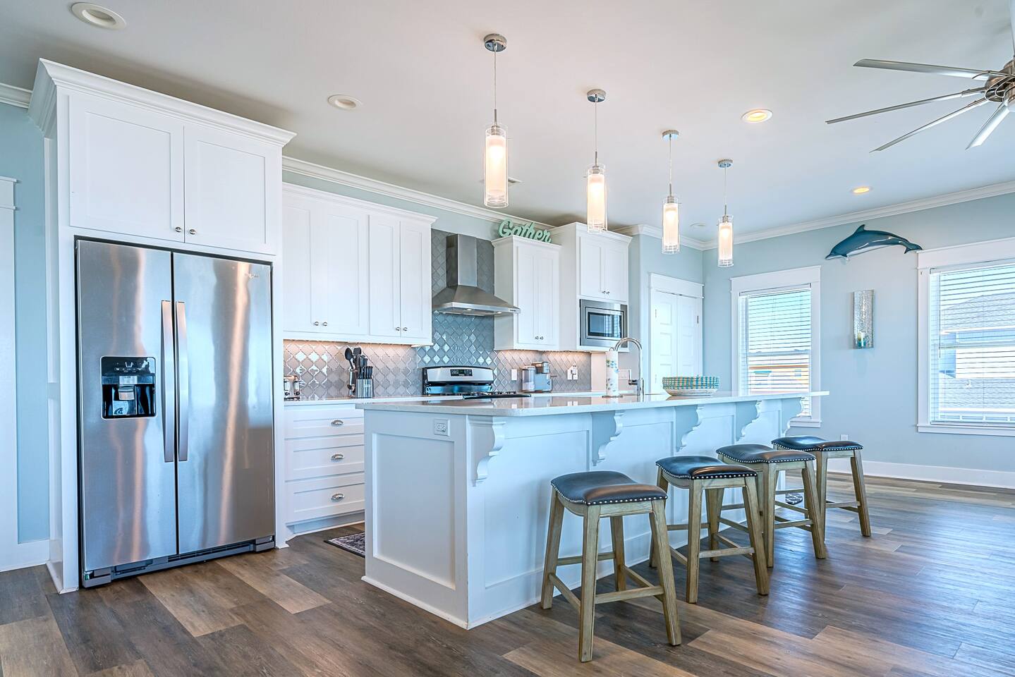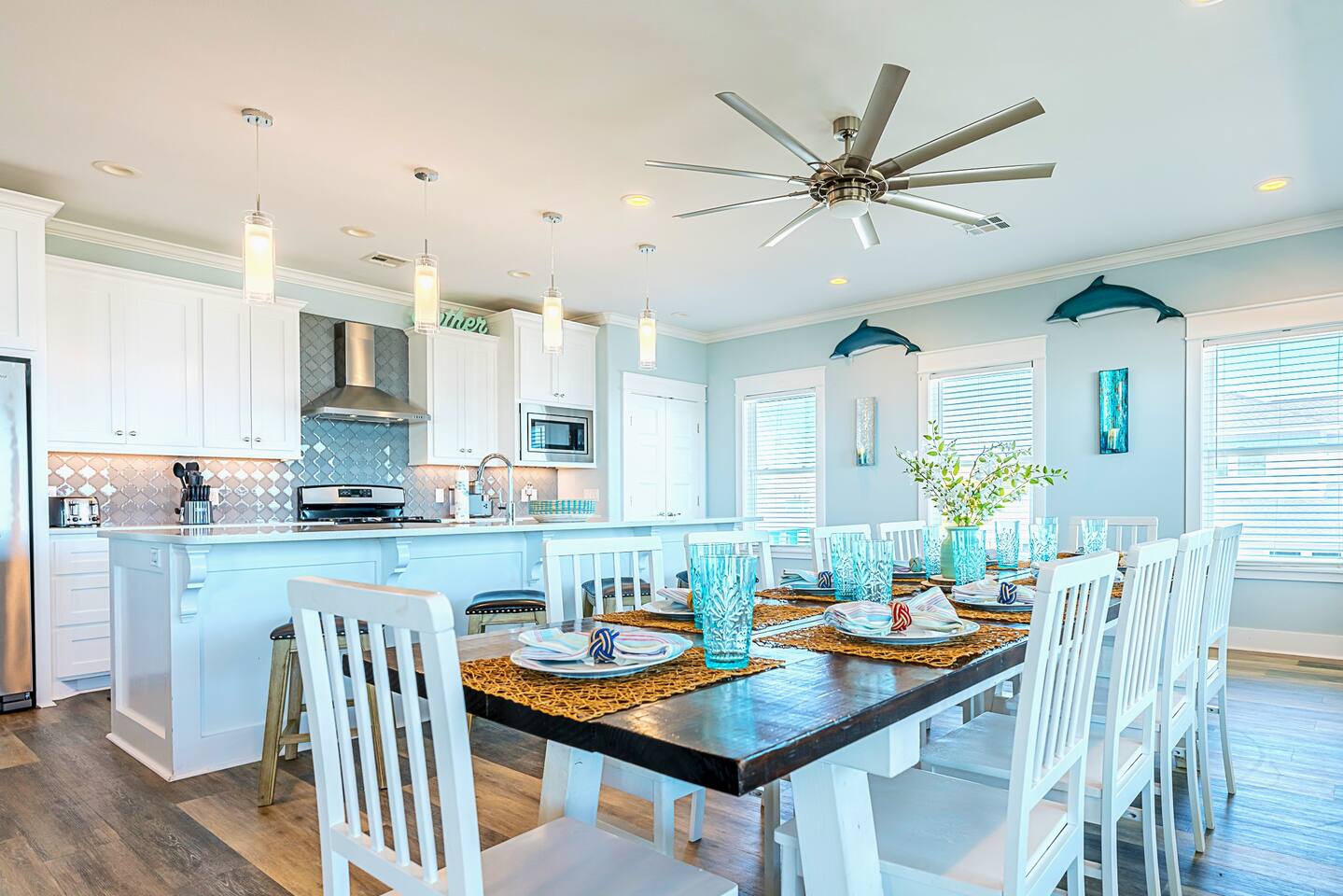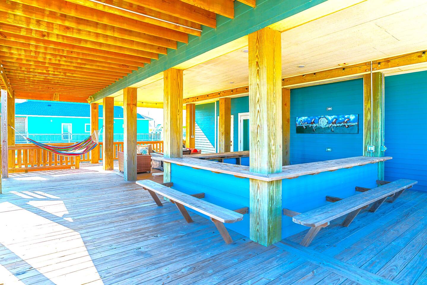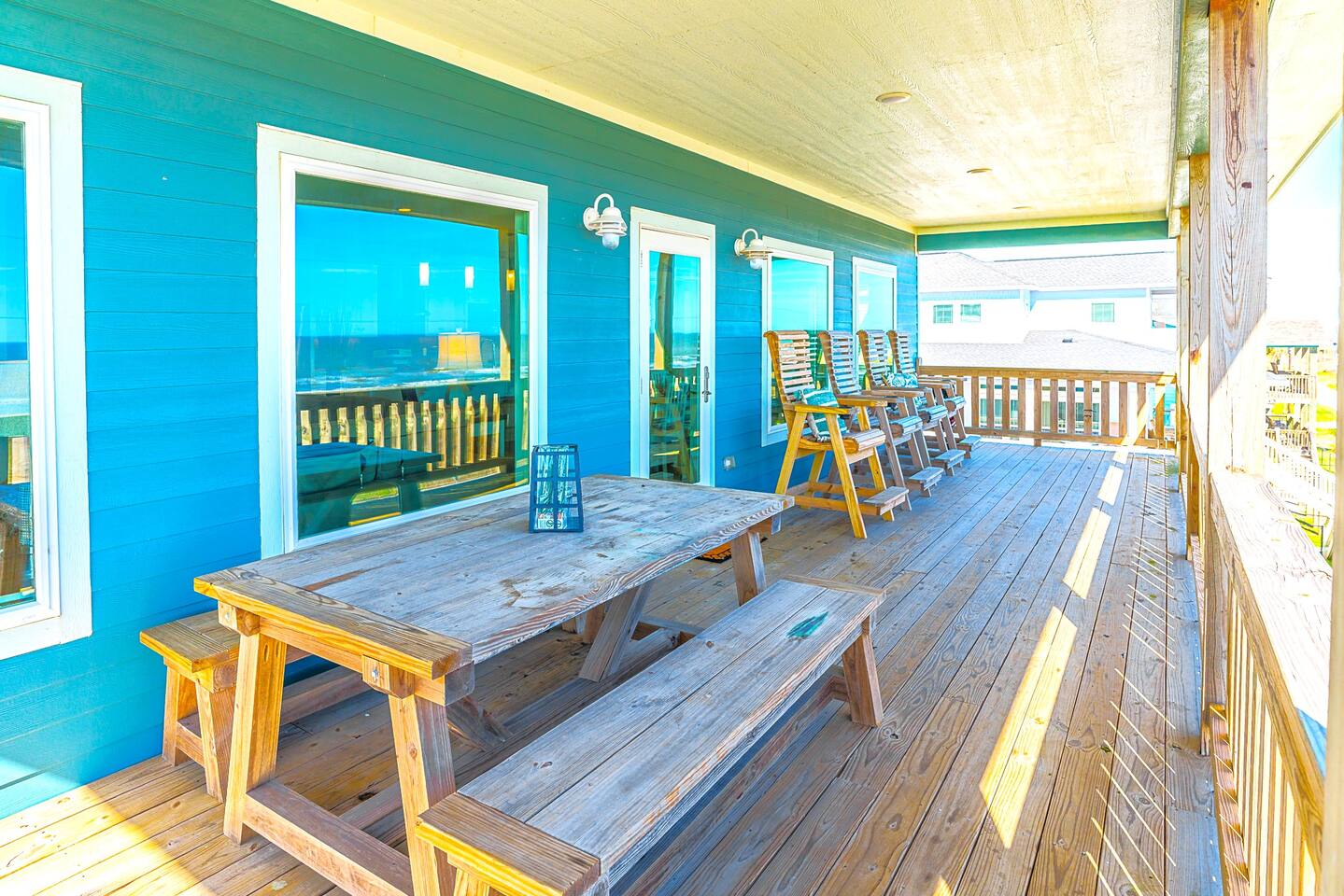 You will love this place. There are many unique amenities that you won’t find with others. This beachfront home has unobstructed views of the ocean from both the top and middle decks to enjoy every sunrise. Crystal Beach is only a few steps away with walking and vehicle access so you can bring all of the necessities to the beach with you. This is one of the top spots in all of Crystal Beach because of the location. Starting from the top down, the kitchen bolsters all of the essentials to cook great meals for your family. From the stainless steel appliances to the commercial grade ice maker. Everything is top notch. The living room is situated with an open floor plan adjacent to the kitchen and has all of your entertainment needs ready for you when you are. Just outside of the living room and kitchen is the upper level deck, with a variety of seating choices to enjoy the morning coffee with the new day. Going back inside, move past the kitchen and you will find the Master Suite. The Master is outfitted with a King Bed and a mounted Smart TV. The Master Bathroom includes a His/Hers sink setup as well as both a whirlpool tub and walk-in shower with a large Master closet. The 2nd Bedroom or the “Seahorse Room'' comes with a King sized bed and a mounted Smart TV. This room also has its own private bathroom with a tub/shower. There is also a washer and dryer set on this level for your convenience. The middle level deck is where everyone tends to congregate. With a variety of seating and lounging including a large entertainment bar, breakfast table, with lounge chairs, you can imagine why it is so popular! On the middle level, the “Ahoy! Room,” the 3rd bedroom comes with a Queen bed and mounted Smart TV as well as a private bathroom with a walk-in shower. This bathroom has direct access to the middle level deck. The “Mermaid Room,” or the 4th bedroom is a bunk room with 4 beautiful built-in bunk beds and is equipped with a mounted Smart TV. Attached is a “Jack and Jill” bathroom with a walk-in shower shared with the 5th bedroom or the “Turtle Room.” This room is equipped with a mounted Smart TV. *Highlights* -Sleeps 12 in beds (2 extra available on the couch) -Linens are included for beds, couch not included, and sanitized/wrapped before each guest stay, and will be placed on the foot of each bed and in the entryway in the linen bag, ready to be placed on beds. This is for your safety, and peace of mind. -Extra blankets -Dog Friendly up to 45lbs. $75 non refundable security deposit for each booking. 2 Dog Max. Must be approved first. -Beachfront -Vehicle Access to beach (annual beach pass visible on windshield) -Outdoor Shower and water hoses -WiFi included -Smart TVs throughout -Charcoal grill included on ground floor -Washer and Dryer included -Several Board/Card games included -Kitchen is equipped with oven, microwave, gas range, toaster, drip coffee, cutlery, baking sheets, pots, pans, dishwasher, a 40 bottle wine cooler and much more -Equipped with silverware and all place settings for adults and plastic for the little ones -Deck Furniture for your use - note the fire pit and hammock on the 1st deck are not available for guest use -High tops and picnic table below for entertaining -Guidebook to make the most out of your stay with us! Also included are: -All Sheets for beds, couch not included, and Kitchen & Bath Towels (sanitized/wrapped before each guest stay and for home use, sheets ready to be placed on beds). -Shampoo, Conditioner, and Body Wash -Trash Bags -Toilet Paper (2 rolls per bathroom) -1 Paper Towel roll -Basic Cooking Consumables (Salt, Pepper, Oil) -Laundry Detergent Here's the basic rules (see house rules section for detailed explanation): Check-in: after 4:00PM Check-out: before 10:00 AM Early Check-in and Late Check-out are not available due to cleaning, sanitizing and maintenance schedules. Our cleaners are grateful! *Crystal Key is on a septic system and therefore, nothing except toilet paper can be used in the toilets, including extra foods from meals. Please dispose in the garbage first. *The minimum renting age is 25 years old. *We are dog friendly. We have a 45lb/dog, 2 dog MAX policy. No dogs are allowed on the furniture, beds, etc. Many will bring dog beds and crates for their furry friends! For full rules, see house rules, and policies. All Texas Coast homes are built off the ground. It is important to note that guests must be able to climb stairs. Important to note that all coastal regions have the chance for weather disturbances. Due to this it is highly suggested to use a 3rd party rental insurance for your stay. We suggest TravelInsurance, The General or through AirBnB. They offer rates from 7-10% of booking cost in order to ensure that you are covered in the event that there are sudden weather changes. Basic House Rules: We love hosting and we love our guests! Please abide by these rules. Full disclosures can be found on the listing website 1. Wash all sandy feet and hands after a beach visit prior to entering the home. We have provided an outdoor shower and water hoses. 2. Take your shoes off....and stay a while. No shoes is a great beach policy anyway! 3. Woof! No pets on any furniture. Pet's love their own beds and crates give a place of comfort in unfamiliar territory. (MAX 2) 4. All pets MUST have their left-overs removed from the yard, bagged, and placed in a garbage with a liner. 5. We are on a septic system. Nothing except toilet paper can be flushed. All excess food needs to be put in the trash before washing dishes. 6. No parties or events unless arrangements are made with the host prior to the reservation 7. No Smoking in the house. All cigarette butts must be placed in the garbage can downstairs with a garbage liner. 8. Do not move the grill to another floor. 9. Do not climb on or over any railings. 10. Do not move any indoor furniture outside, and any outdoor furniture inside. 11. Make sure you park in the designated areas on